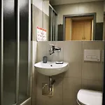 מקלחת בעמידה ושירותים נפרדים מסופקים.